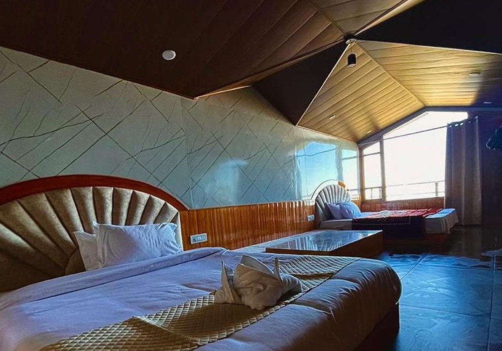We offers elegantly appointed rooms and suites with scenic views of the Himalayas. The rooms are well-equipped with modern amenities and luxurious furnishings.